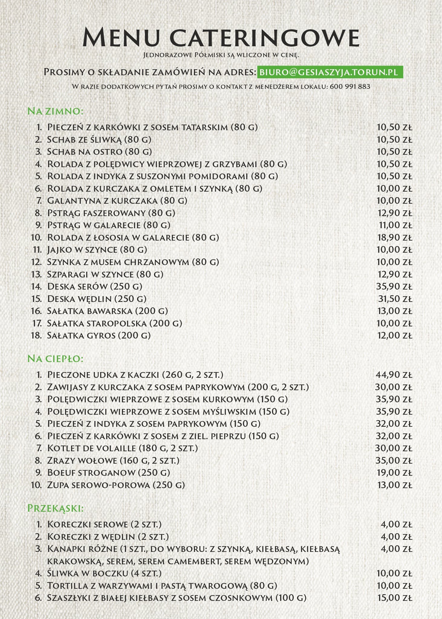 Bardzo szeroki wachlarz potraw z gęsiny, dziczyzny, drobiu, ryb, wszelakich mięs, warzyw i owoców usatysfakcjonuje nawet najwybredniejsze podniebienie.